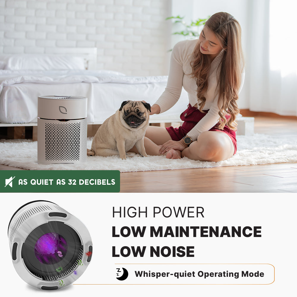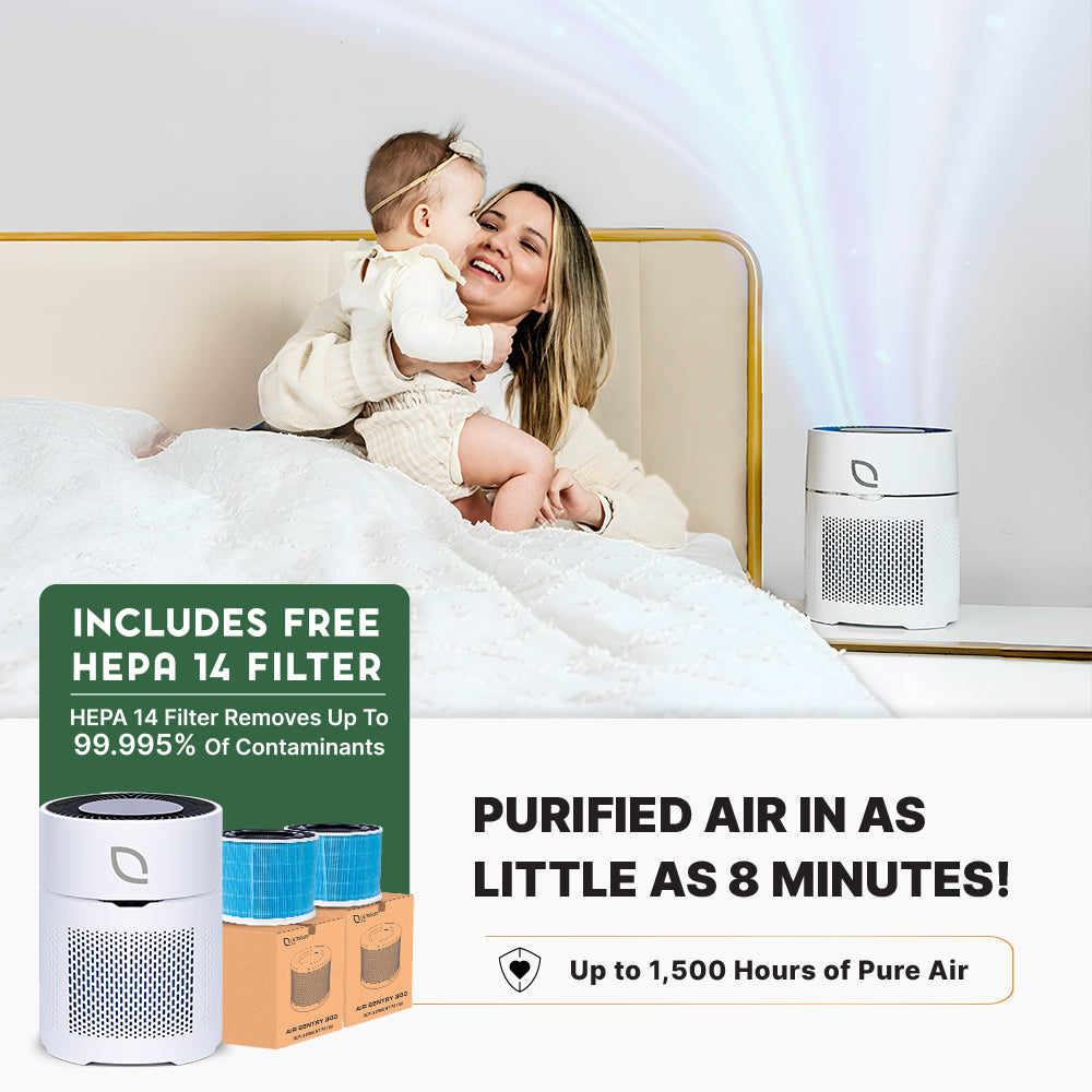 The FDA recommends using at least a HEPA filter to avoid the health risks that accompany polluted air. The Air Sentry 100 has a true HEPA 13 filter with 99.97% filtration capacity for particles that are 0.3 microns or larger. Plus, it includes a free alternate True HEPA 14 filter with a 99.997% filtration percentage of particles 0.1 microns or bigger. The HEPA 14 filter is perfect for viral protection during flu season or when sicknesses are going around. With the HEPA filters, you can be confident that your air is free from dangerous particulates. As well, the UV-C sanitation and carbon filter in the UltraLux Air Sentry 100 keep your space free from VOCs and free of odors!